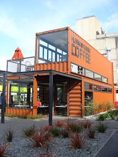 Coffee shop on a bare piece of land. I found it very hard to know where we were, as so many landmark buildings no longer exist.