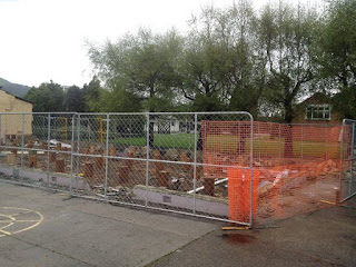 Rec. beside the church. Two classes have moved in to room 8 and the library.